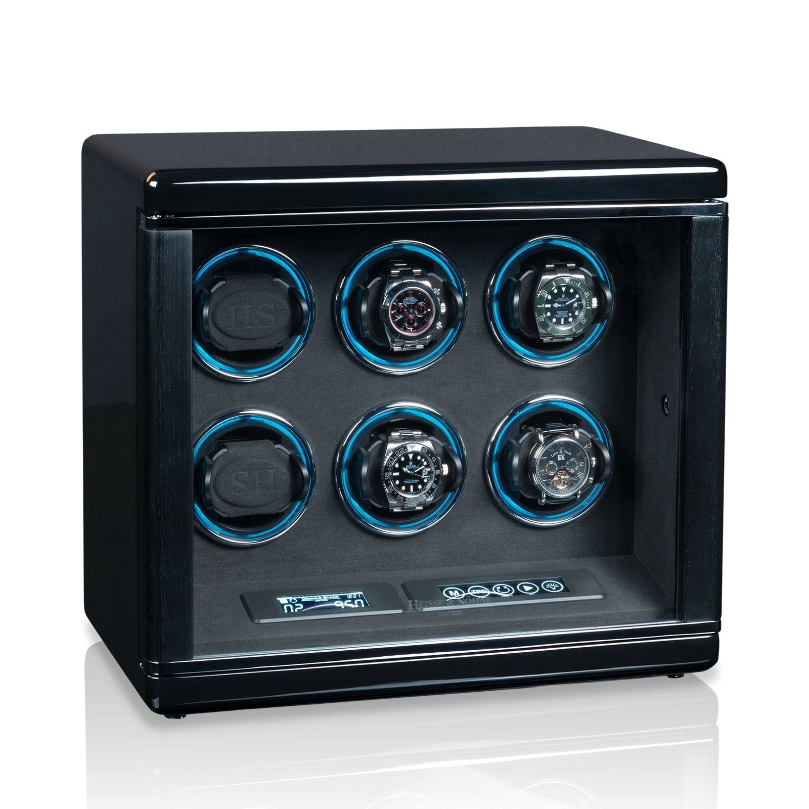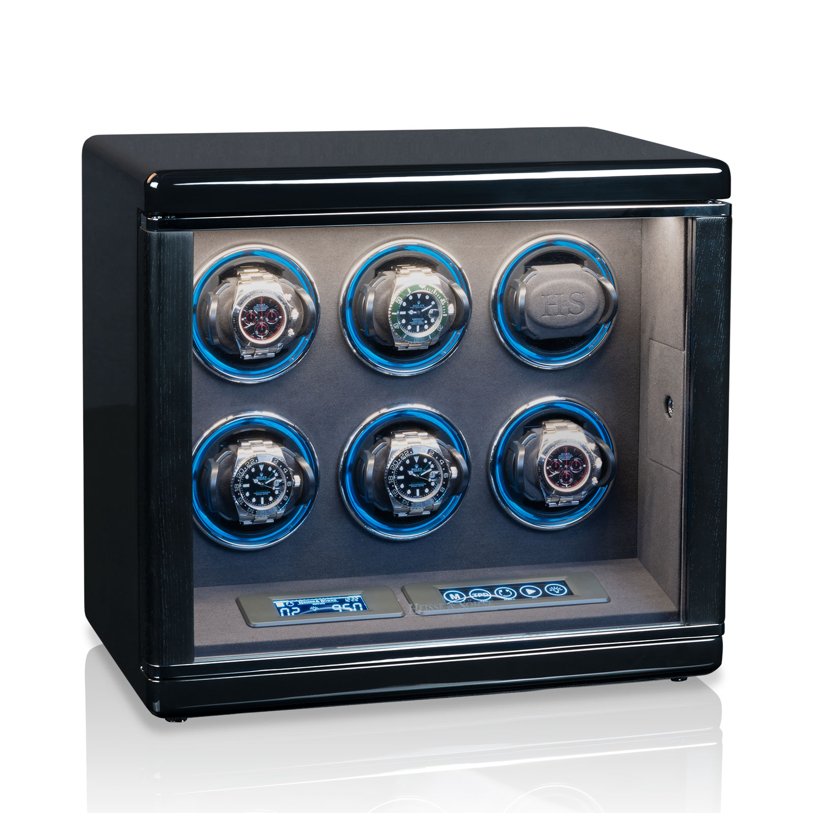 Im Inneren der Uhrenbeweger arbeitet die neueste H&S Premium-Drive Technologie von Heisse & Söhne, die einen schonenden,