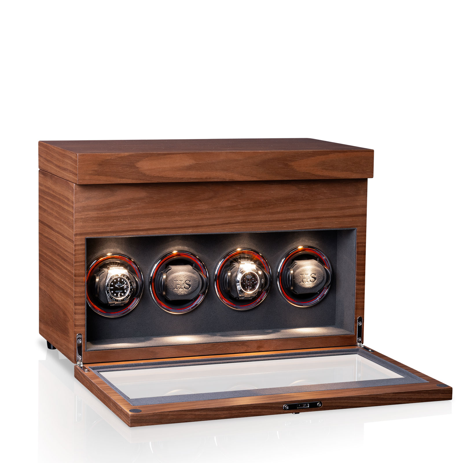 Ausgestattet mit der neuesten Technologie von Heisse & Söhne, dem H&S Premium-Drive, sorgt der Uhrenbeweger für einen schonenden,