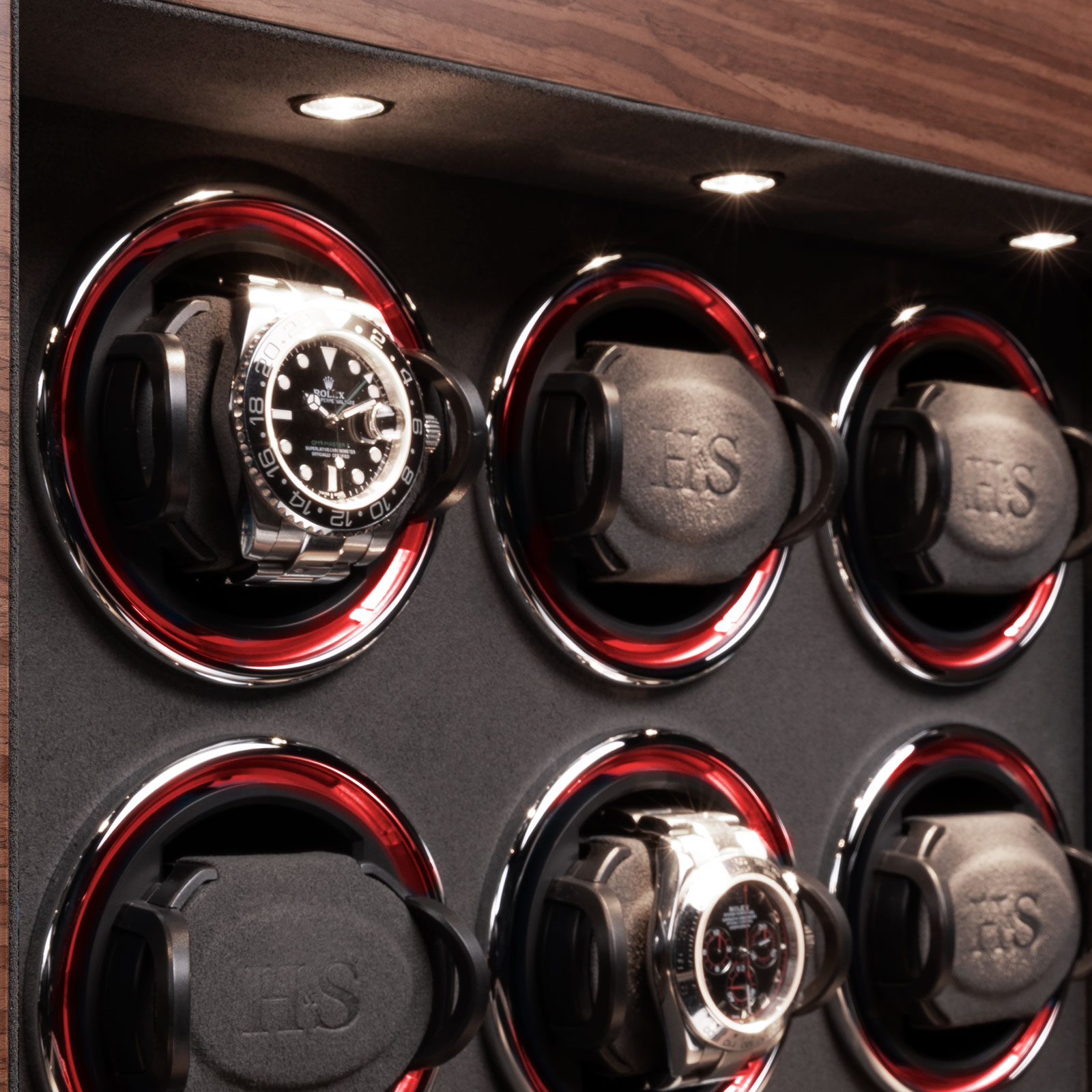 Nutzen Sie die innovative Modulbeleuchtung (H&S Motion-Light), um Ihre Uhren spektakulär zur Geltung zu bringen.