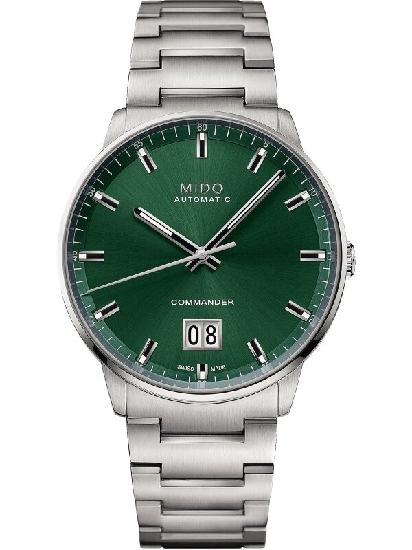 Das Herzstück dieser außergewöhnlichen Uhr ist ihre markante Big Date-Anzeige. Während viele Uhren mit einem kleinen Datumsfenster auskommen müssen, präsentiert die MIDO COMMANDER BIG DATE das Datum großzügig und gut ablesbar – ein echter Komfort für den täglichen Gebrauch. Das Gehäuse, geformt von der Inspiration maritimer Bullaugen, umschließt ein präzises Schweizer Automatikwerk, das für jahrelange Zuverlässigkeit steht. Jedes Detail, von der satten Farbgebung des Zifferblatts bis zum komfortablen Armband, ist durchdacht und verleiht Ihnen ein Gefühl von zeitloser Qualität.